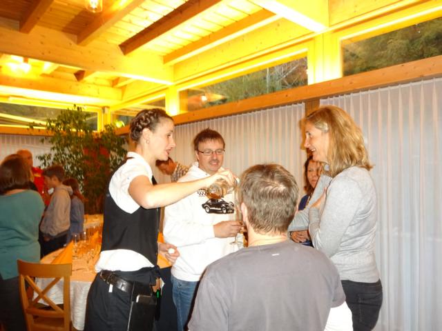 ![]() | Treffpunkt unseres letzten diesjährigen GT-Anlasses war wieder einmal der Landgasthof Lerchenhof in Reiden. Hügel rauf und runter ging die interessante Fahrt bis zum Hallwilersee und weiter nach Hägglingen, ins Ausflugsrestaurant Maiengrün. Das neblige und nasskalte Wetter hinderte uns daran, auf den Aussichtsturm zu steigen, von welchem aus (bei schöner Witterung!) der Bodensee und der Schwarzwald zu sehen sein sollen. Im schön aufgedeckten und warmen Saal erwartete uns ein von Margot offeriertes Glas Roséwein und der Wirt spendierte schmackhafte Häppchen dazu – vielen Dank! Das Essen wurde uns in kleinen „Mistbännen“ serviert, ein lustiger Einfall des Wirts! Bei fröhlichen Erzählungen von Erlebnissen, Begegnungen und unter viel Gelächter liessen wir die GT-Saison 2016 Revue passieren, bevor wir uns auf dem Heimweg begaben und die GT’s für den Winterschlaf vorbereiteten. | |