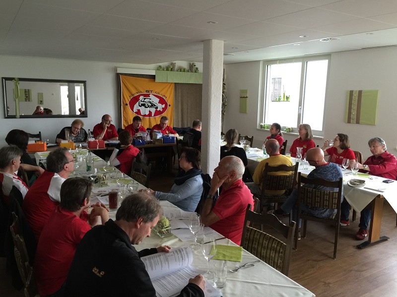 ![]() | SAISONAUFTAKT UND GV Der Start in die neue GT-Saison begann in Holziken, wo sich sauber geputzte GT’s zu einer gemeinsamen Fahrt Richtung Hirschthal trafen. Eine schöne Frühlingsfahrt mit 10 GT’s führte uns durch den Kanton Aargau bis nach Inwil, wo die 37. Generalversammlung stattfand. Nach einem feinen, von Margot gesponserten Aperitif, zu dem auch noch ein paar direkt angereiste Mitglieder eintrafen, begann die GV mit einer Schweigeminute für unser im September 2015 verstorbenes Mitglied Tom Mike Beerli. Als Nachfolger unseres langjährigen Kassiers Christoph Baur wird Reinhard Janssen einstimmig gewählt. Danke Christoph für die exakte und gute Buchführung, wir bedauern deinen Rücktritt! Zum Abschluss der reibungslos verlaufenen GV genossen wir in gemütlicher Runde das Abendessen. | |